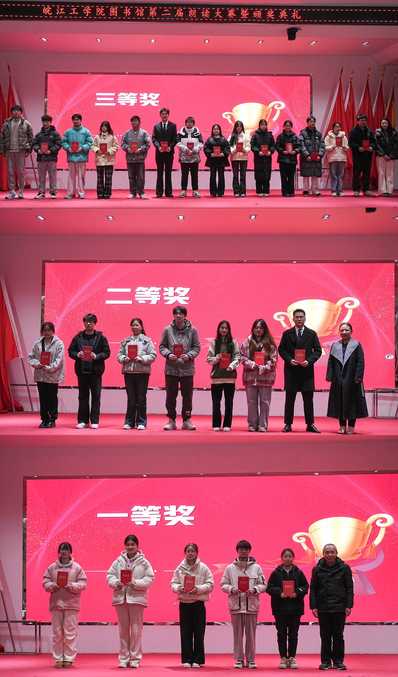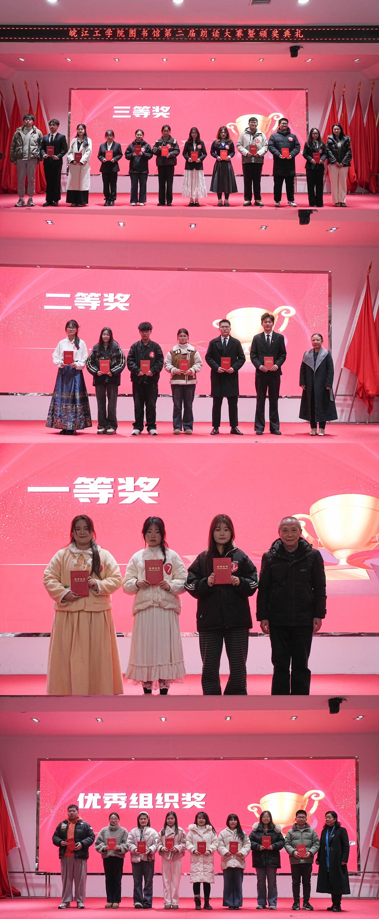 皖江工学院第二届朗读大赛在温馨而富有感染力的氛围中圆满落幕。此次活动不仅为同学们提供了一个展示自我、锻炼能力的平台,更在全校范围内进一步点燃了阅读热情,彰显了文化育人的力量。未来,学校将继续以阅读活动为载体,引导广大师生与书籍为友,与经典同行,为建设底蕴深厚、气质高雅的书香校园而不懈努力。