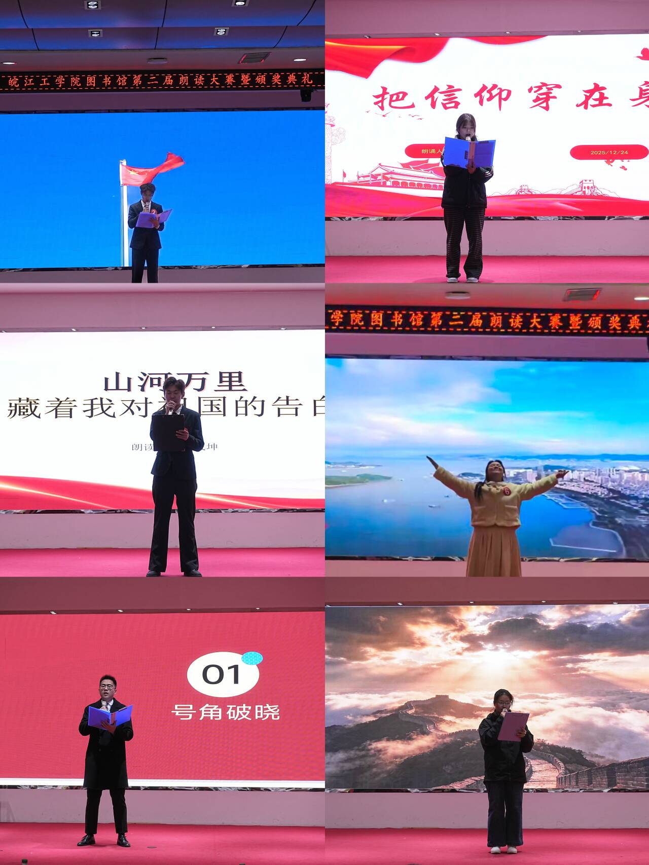 随后,备受瞩目的朗读大赛决赛正式拉开帷幕。从众多报名者中脱颖而出的19位决赛选手依次登台,他们围绕红色经典、青春理想、家国情怀等主题,深情演绎了《中华诵》《青春中国》《红色精神,中国脊梁》《把信仰穿在身上》等优秀作品。选手们或慷慨激昂,或深情款款,用声音赋予文字新的生命,在舞台上展现了我校学子扎实的语言功底、真挚的情感表达和良好的精神风貌,赢得了现场观众的阵阵掌声。