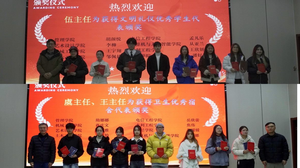 本次郑蒲港校区2025级“双优”新生表彰大会文明礼仪评选,有胡颜悦、李柳、王宇翔、邹佩铃、孟凡乐、从亚兰、王欣妍、潘好等141位同学荣获“文明礼仪优秀学生”称号;隋娜娜、蒋庆文、黄博雅、 刘欣怡、 岳欣蕾、 焦伟、方淑娜、郑媛媛等36位同学代表的宿舍荣获“卫生优秀宿舍”称号。