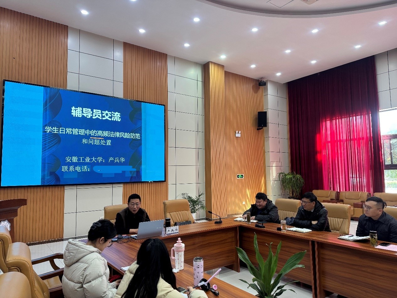 第二讲由安徽工业大学公共管理与法学院专职辅导员产兵华老师主讲,主题为《学生日常管理中的高频法律风险防范和问题处置》。产兵华是马鞍山仲裁委员会仲裁员,长期深耕学生管理和法律实务工作,具备扎实的法律专业知识和丰富的风险处置经验。他结合当下学生权利意识提升、网络舆情放大效应凸显以及学校公权力属性等时代背景,深入剖析了学生日常管理中的高频法律风险点,并针对性地提出应对策略。他指出,辅导员开展工作需建立标准化工作流程,强化记录、归档和证据意识,明确自身工作边界,严格遵循“法无授权不可为,法定职责必须为”的原则。具体而言,要坚守信息最小化原则,严防学生隐私泄露;坚持经济零经手,不触碰、不过手学生班费、奖助学金等款项;明晰自身情感支持角色定位,不越位充当裁决者;注重书面风险提示,提前规避潜在风险。对于突发事件处置,要秉持“先调查后定性,先沟通后处置”的原则,科学妥善化解矛盾问题。