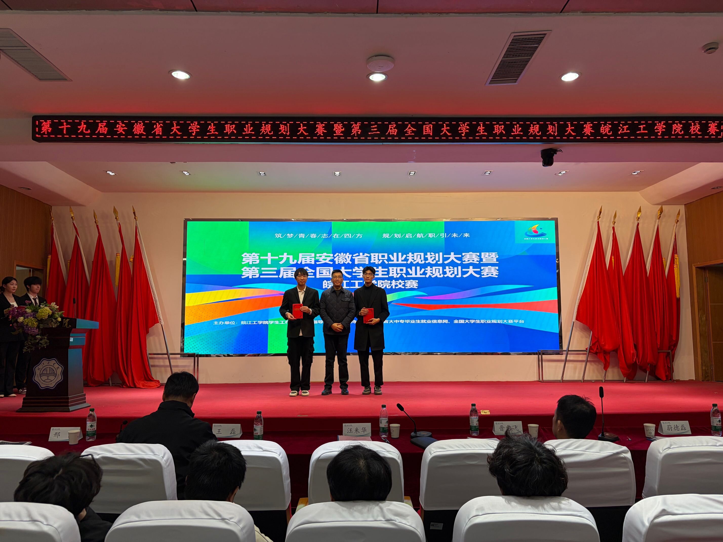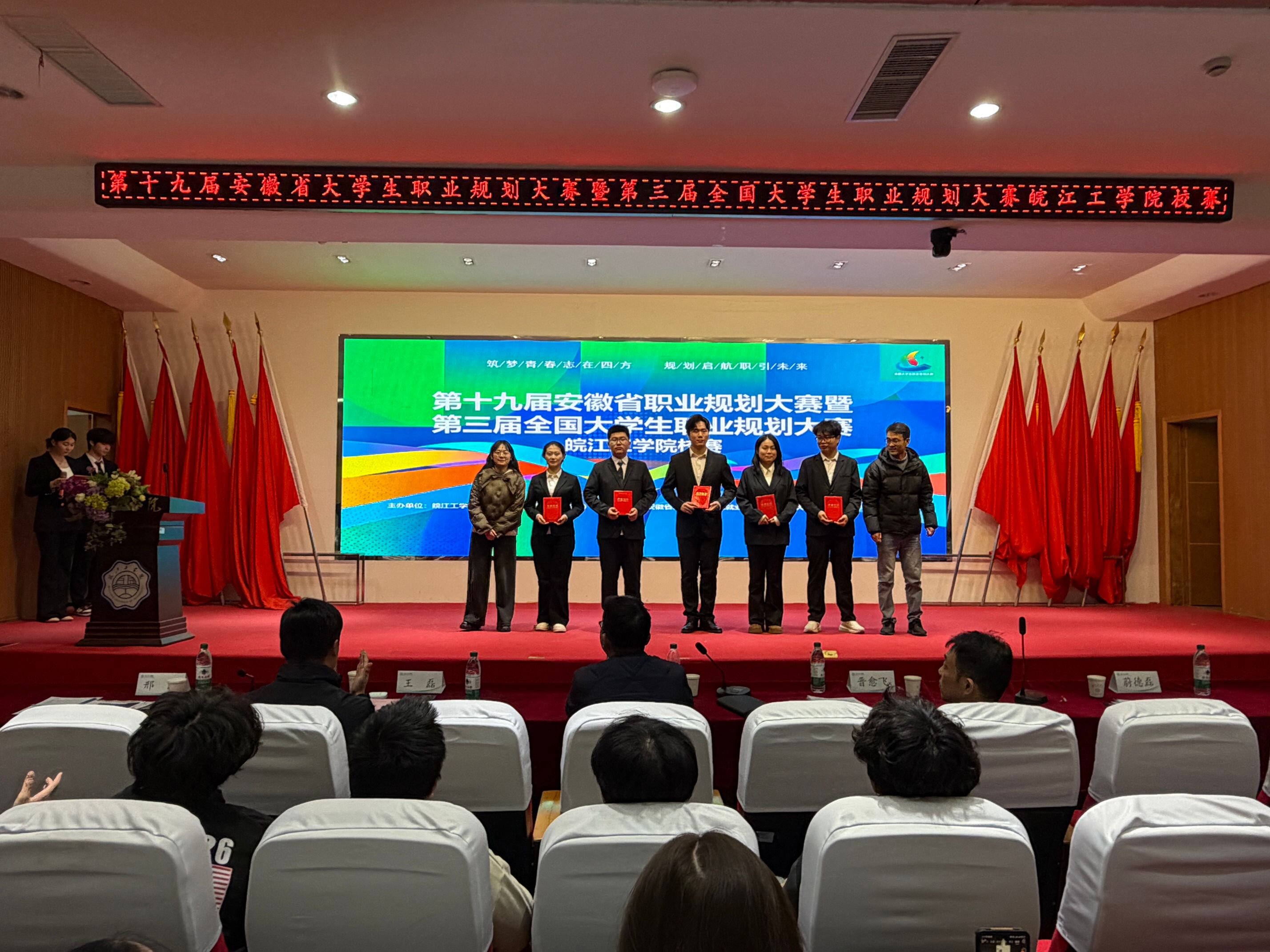 为积极响应国家关于加强大学生职业生涯教育的号召,全面落实立德树人根本任务,切实提升大学生职业生涯规划能力与就业竞争力,引导学生科学规划学业与职业发展,我校于2025年12月5日在图书馆报告厅成功举办“第十九届安徽省大学生职业规划大赛暨第三届全国大学生职业规划大赛校赛。经过多轮角逐,最终评选出一等奖2名、二等奖3名、三等奖5名,大赛取得丰硕成果。