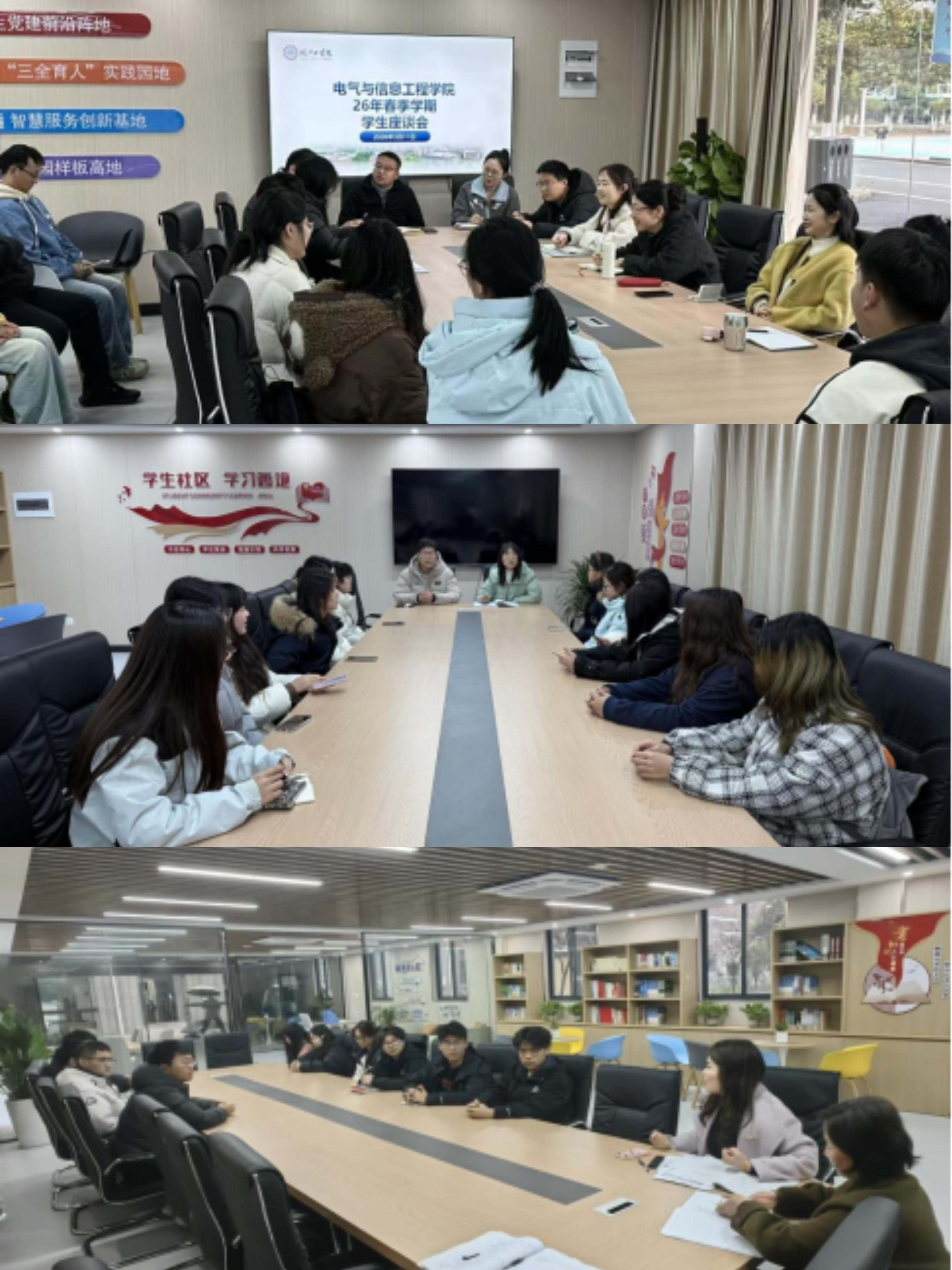 为践行“以学生为中心”育人理念,深化“一站式”学生社区综合管理建设,畅通师生沟通渠道,近日,各二级学院分别在学生第二、第四社区召开新学期学生座谈会。各学院领导、专业教师及辅导员代表与各年级学生代表围坐交流,倾听学子心声,解决实际难题,共促成长发展。