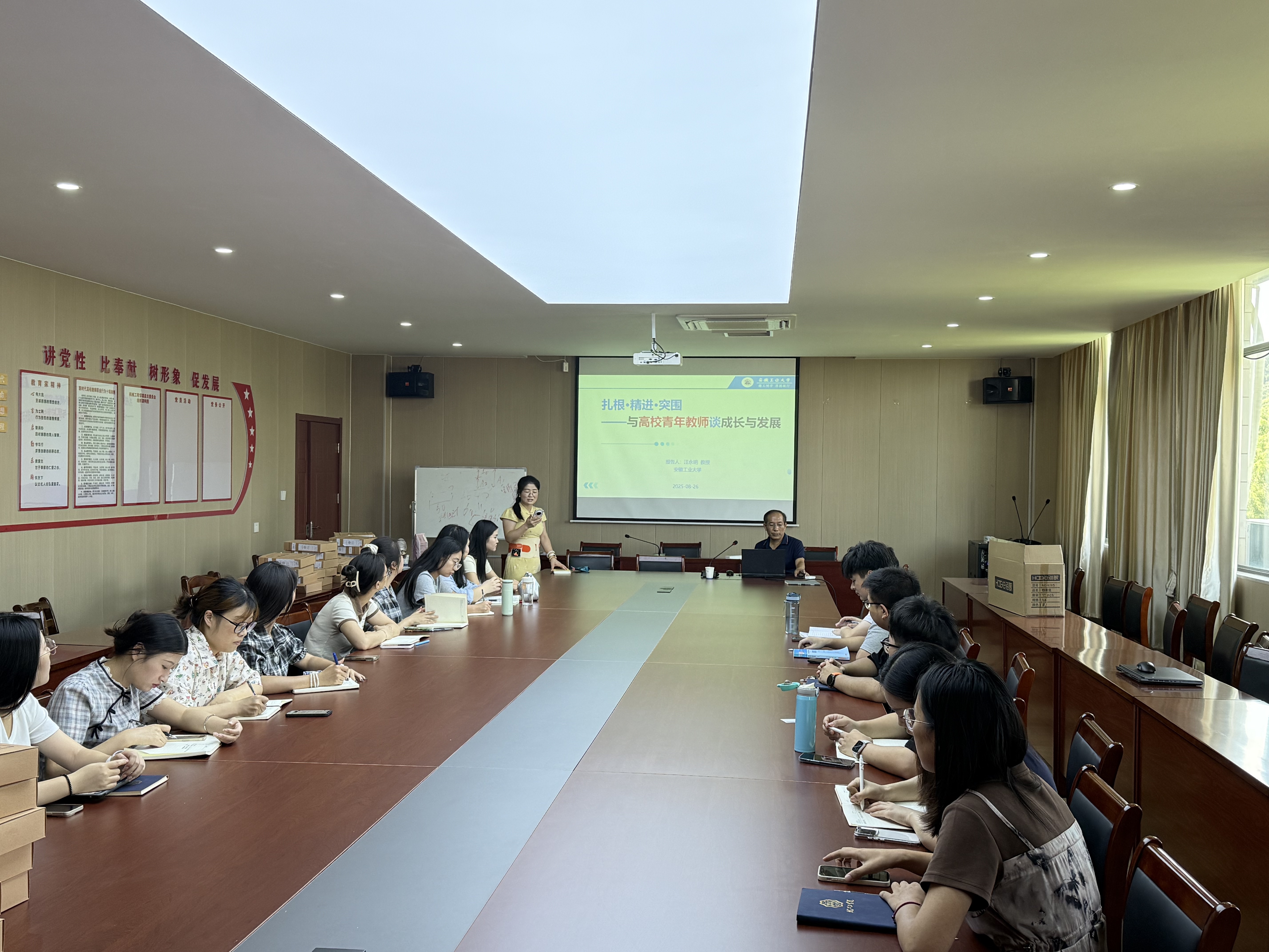 为助力我校青年教师明晰职业规划、实现跨越式发展,8月28日下午,由机械工程教研室主办的“扎根·精进·突围——与高校青年教师谈成长与发展”主题报告会在敦行楼H518成功举行。本次报告会特邀安徽工业大学汪永明教授担任主讲嘉宾,机械工程教研室主任陈田主持,吸引了学院的众多青年教师积极参与。