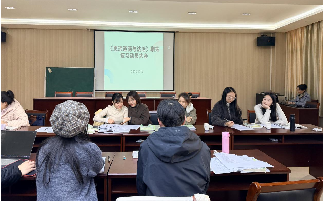 最后,赵萍强调,期末复习是检验教学成果、提升学生获得感的关键环节。她要求全体教师:一要坚守思政育人本位,将价值引领有机融入知识传授与能力培养全过程;二要强化过程精细管理,加强课堂互动与反馈追踪;三要凝聚团队作战合力,发挥集体备课优势,共享优质资源。与会教师也纷纷表示:将以高度的责任感投入复习指导,助力学子自信迎考。
