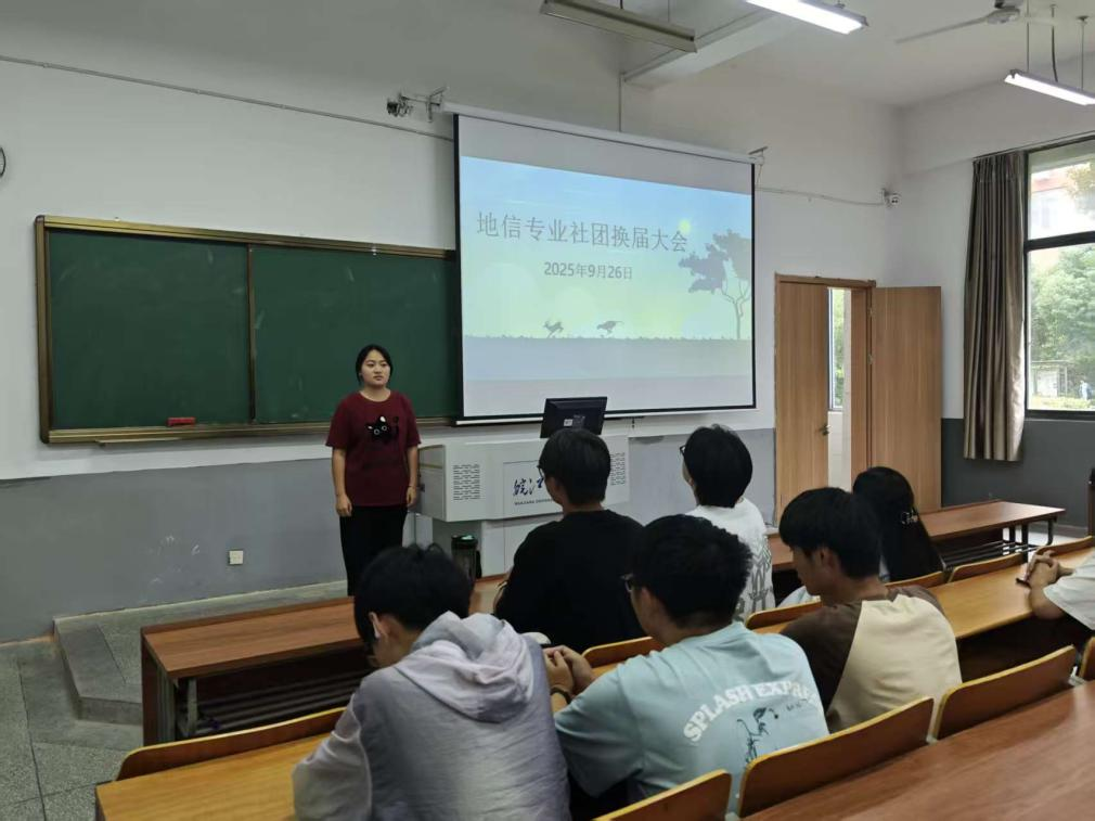 此次换届不仅实现了社团负责人的新老交替,也进一步凝聚了全体成员的发展共识。新任社长陶雨晴表示,将整合跨年级资源,积极组织参与更多实践项目和学术活动,全面提升社团成员专业能力。沈豪老师总结指出,社团应持续关注地理空间信息学科前沿动态,为培养具备实践能力与创新思维的专业人才搭建平台。未来,全体成员将携手共进,为地理空间信息领域发展注入青春活力。(土木工程学院  供稿)