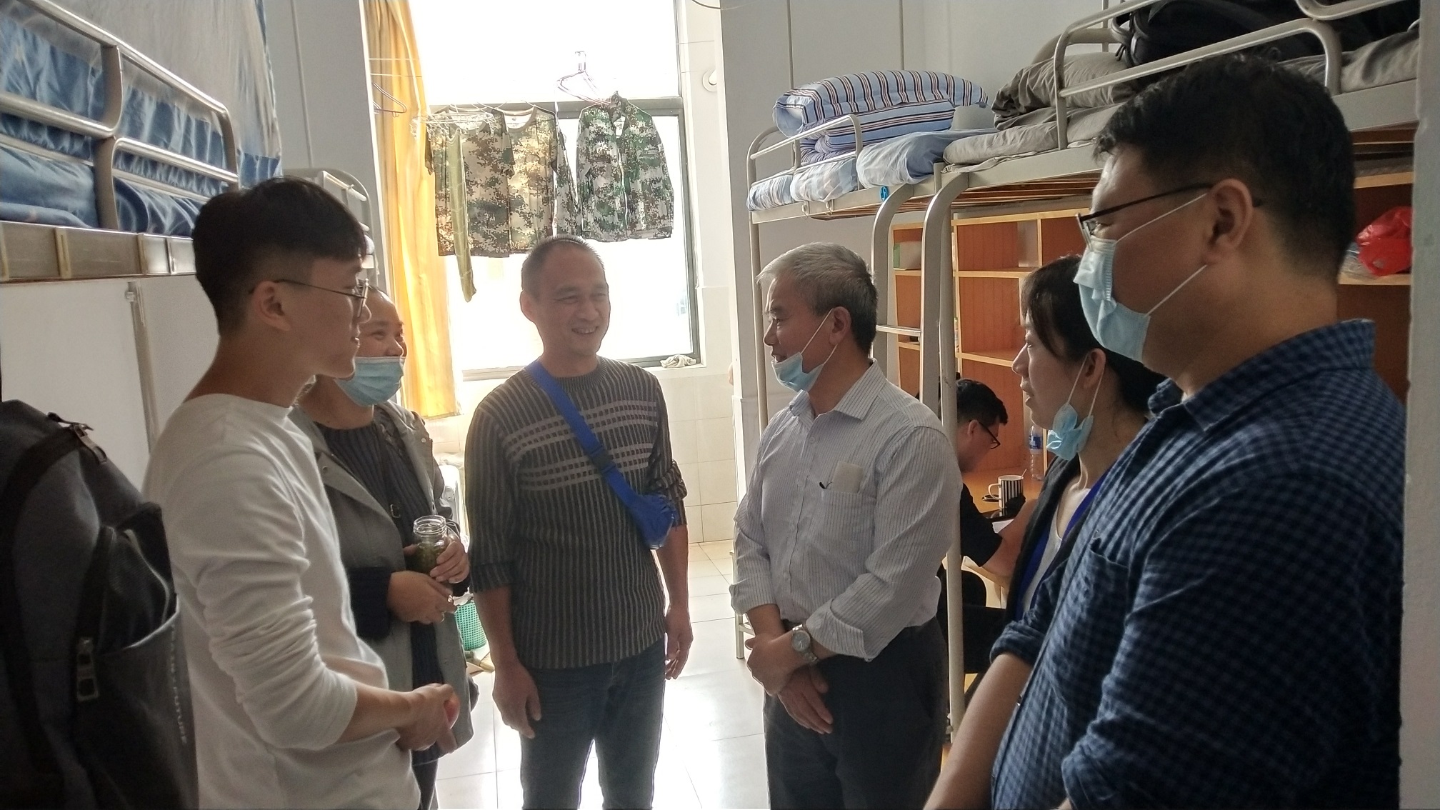 10月11日下午,为了解20级新生宿舍入住情况,我院院长陈礼和、院党总支副书记王瑜、院长助理彭龙杰、分团委书记李鸿晨、辅导员丁爱华、盛禄、齐敏对新生宿舍进行了走访。